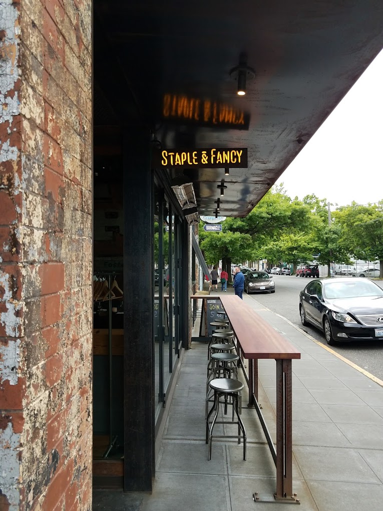 Staples & Fancy is an American-Italian restaurant with pastas and burratas at an Italian standard. It also has several varieties of sockeye salmon – which, this being Seattle, has become the fish main par excellence. The wine list is middling, but there are some nice Italian options on the menu.